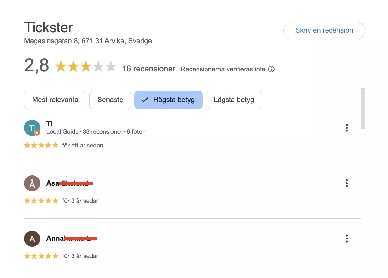 Riskfylld affärsmodell – men här var det Tickster själva som orsakade skadan